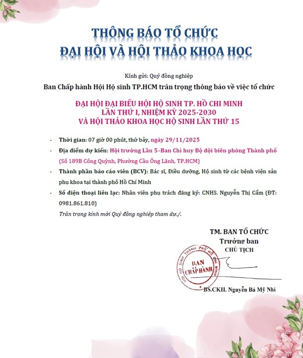 Thông báo Hội Thảo Khoa Học Hộ Sinh Lần 15